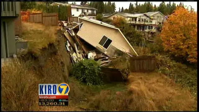 Three houses in the Valley View neighborhood were red-tagged by the city of Everett. One of these three houses slid down the bank, and the others are deemed to be unsafe. The culprit was excess water known as 'Armaggeddon Creek'. The water is racing down the sandy loam soils of the bank, which has up to 40% slope causing landslides.